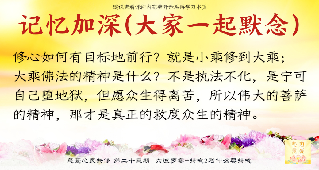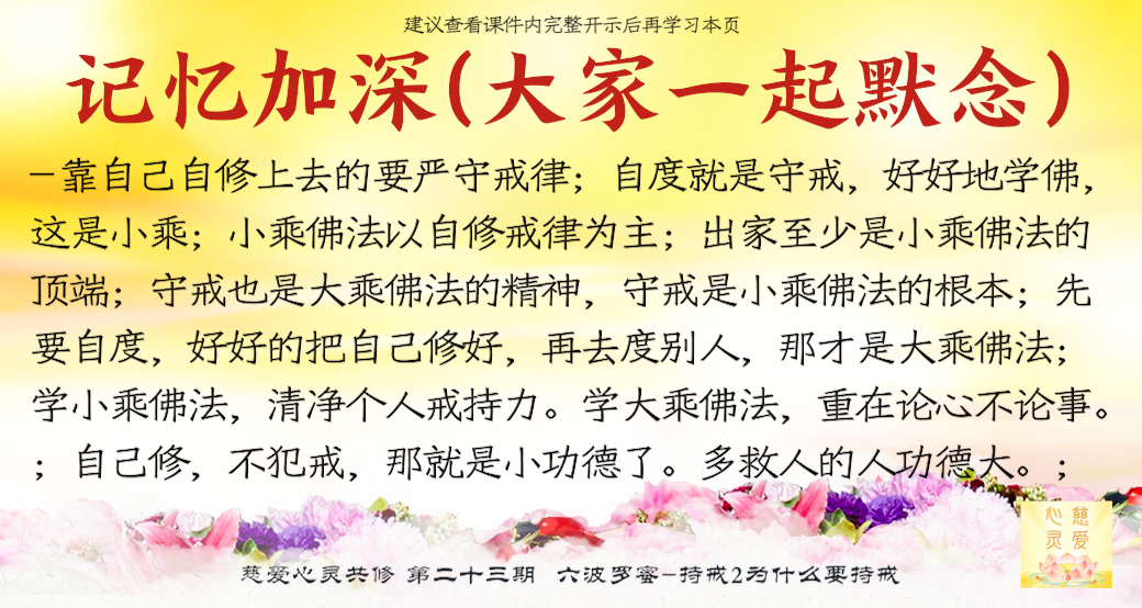我们先要自度,好好的把自己修好,再去度别人,那才是大乘佛法。所以心灵法门不但学小乘佛法,而且与大乘佛法一起学!看到自己修得不好,好好地自律,以戒为本,那就是小乘佛法;看到别人受苦了,觉得自己有能力去帮助别人了,就拼命地帮助别人,那就是慈悲众生,那就是大乘佛法。
