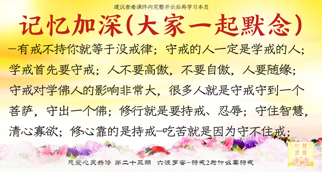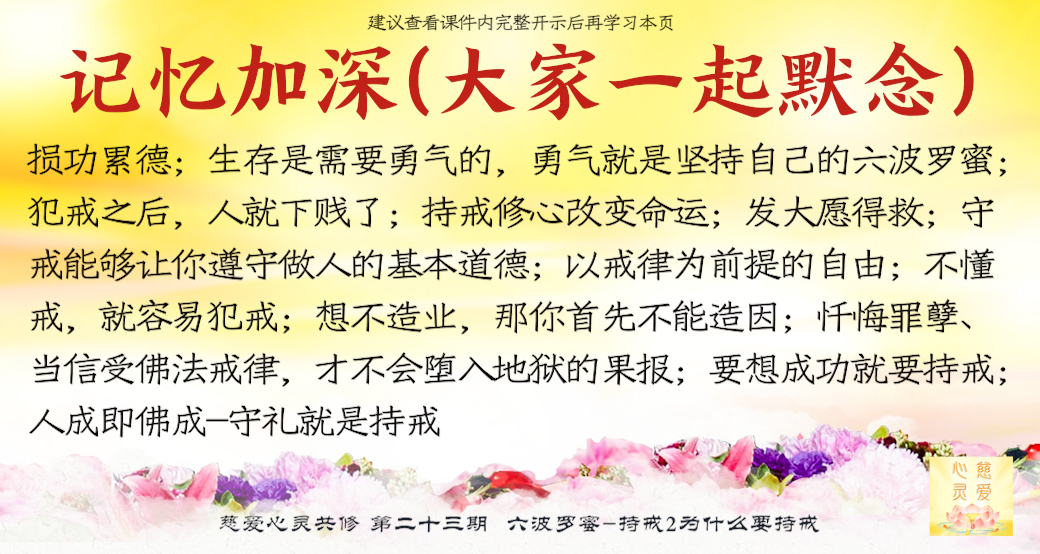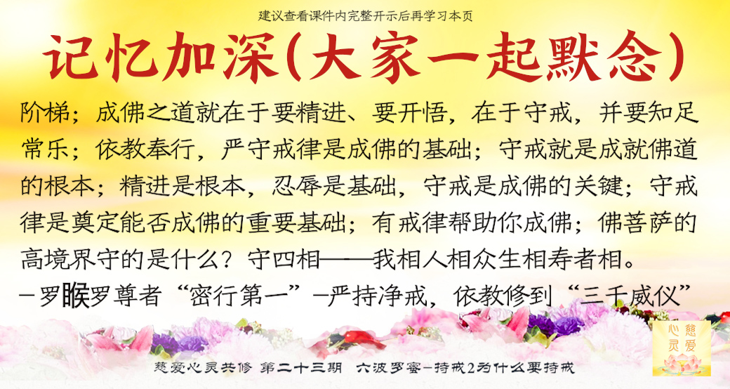 什么是持戒?就是坚决不做不好的事情。忍辱是什么?就是人家骂我了,我就不骂他。。。持戒,守住智慧,清心寡欲。清心是什么意思?就是心要干净。寡欲是什么?寡就是少的意思。欲是什么?欲望。就是让自己的欲望越来越少。