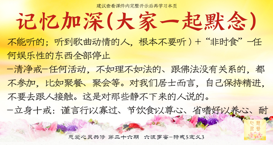 我不知道你们能不能坚持“非时食”,不要随便许愿,许愿之后做不到更糟糕,因为你现在不是出家人。不该吃的时候不要去吃,吃饭要有时间的,不在吃饭的时间,像你们女孩子整天吃零食,你说说看“非时食”吗?你非时食的话,连零食都不能吃(就是只吃早中晚餐?)吃饭本身就是维持生命的一个方法而已,并不是说可以让你吃吃玩玩的,任何娱乐性的东西全部停止。你们做不到的话,乱来、犯戒更糟糕(就是不去贪图吃饭以外的这种口腹之欲,对吧?)对,都不可以的。你记住了,任何在家居士,“哎呀,我修十戒了”“哎呀,我修几戒了”,全是吹牛的,他做不到的,他不是法师。守守五戒吧,连五戒都守不好还守十戒?(是的)贪瞋痴慢疑,这种戒先守守吧;杀盗淫妄酒,你这个人邪念、邪淫念多不多?你妄语吗?一天要吹几个牛?还守十戒?五戒都守不好