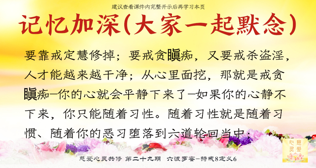 就是说,我已经在意念上知道这个是一个错误的行为,这个是一个不符合人间正常伦理的一个事情,所以这种事情我不能去做。从心里先来戒掉它,那你慢慢地就真的戒掉它了。所以我们做人做事情,要懂得做什么事情都要用心。如果你表面上对这个人很好,你心里很恨他,说明你还在人道里,还在人间的恶事恶行里面;如果你真的能够原谅他了,从心里原谅他了,你会慢慢的对任何事情都会看穿,你就不会去恨很多连自己都憎恨自己做错的人的事情。