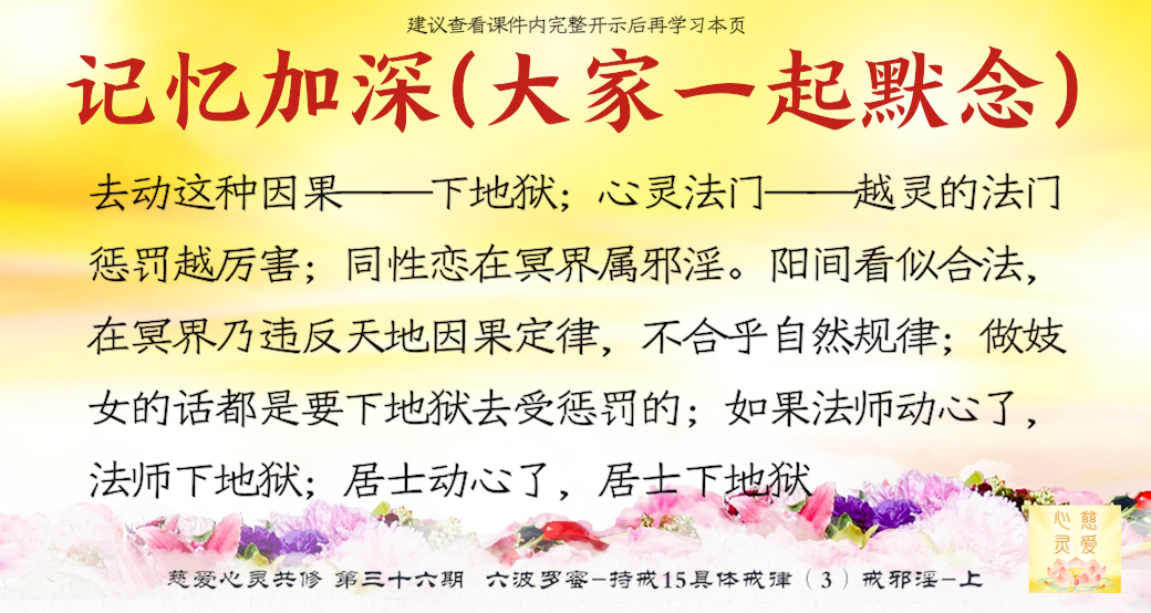 不就异性吗?克制,离开。不管是谁,学佛之后,如果去动这种因果——下地狱。很难的,必须克制。除非这个男的是单身,这个女的单身,他们两个有缘分,他们愿意谈,OK;双方当中只要一个有家庭的,不许做,一定会出事。心灵法门——越灵的法门惩罚越厉害。我告诉你们,不要去做这种事情,天网恢恢,疏而不漏。不管是谁,学佛一定要精进,只能向前,不能退后,只能努力。好好守戒,一定能上天。相信师父。