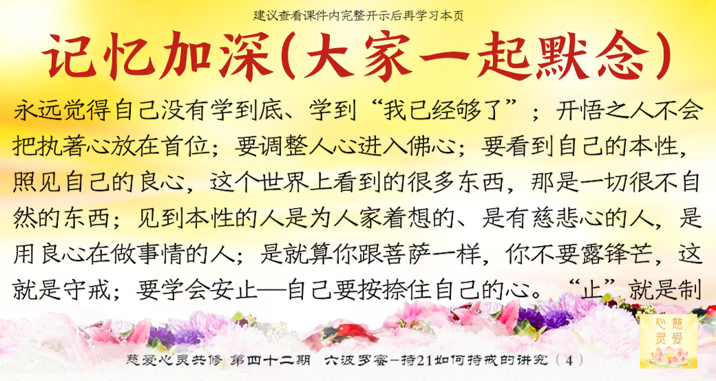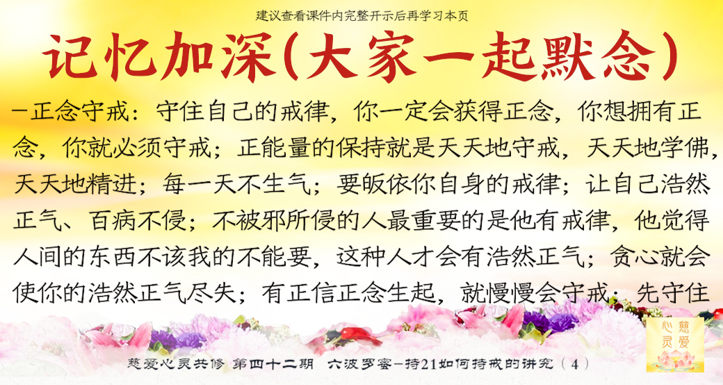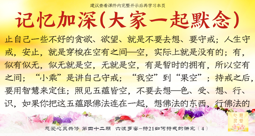 自己要按捺住自己的心。“止”就是制止自己一些不好的贪欲、欲望,学会守戒。守戒很重要,你说我们做人最起码的守戒是什么?看见红灯要停吧?这也叫守戒吧?你看见别人再好的东西你不能拿,不是你的,所以叫守戒。