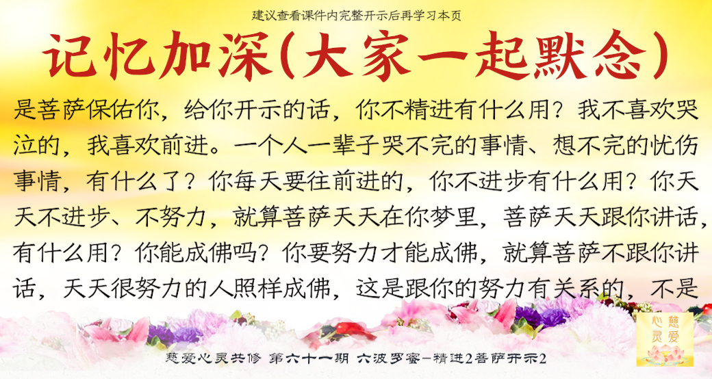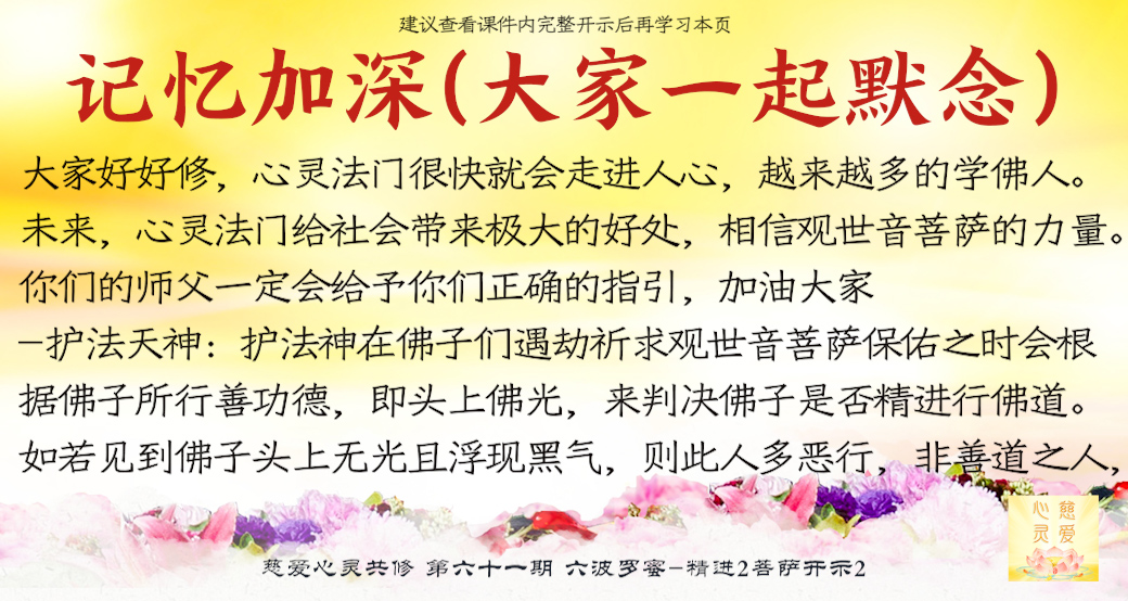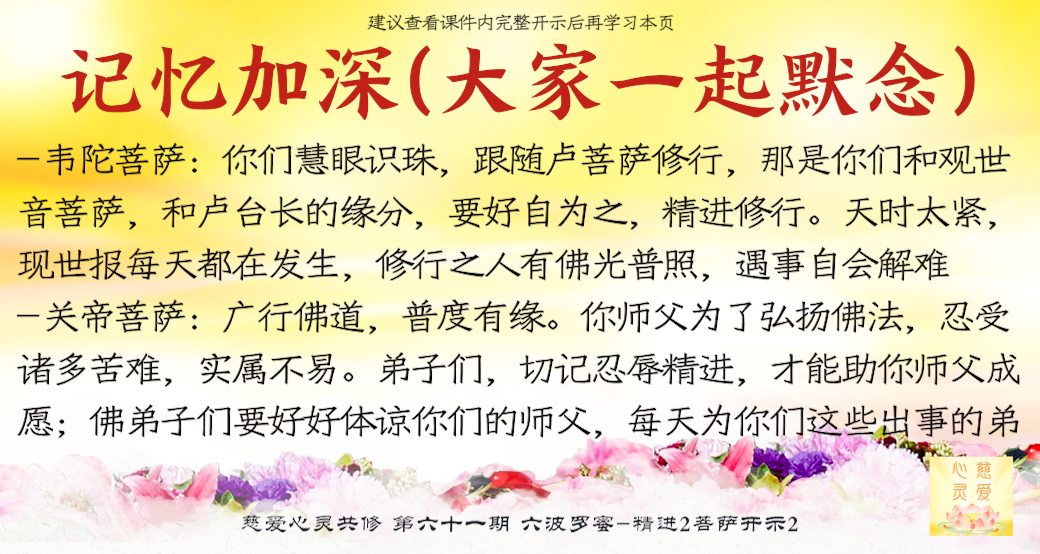 (“心离体相,背尘合觉。大度能度堪为广度,大悲无我方为正觉。即心即佛,舍我其谁。欲成正觉,舍其忘我。我为说法,法身亦同。”)但是师父后来也跟着观世音菩萨弄两句文言文,实际上这几句话就是鼓励大家要精进修行,时不待人啊,时间不等人啊
