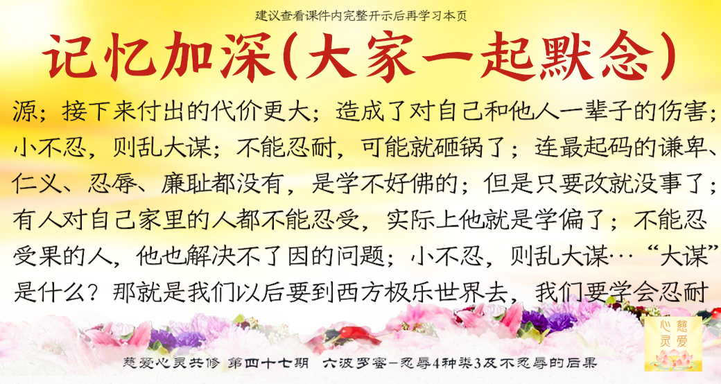 很多人学佛之后沉着、冷静、有智慧,有些人越学越浮躁,如果学佛后整天想跟人家斗,整天讲这个不好、那个不好,那你学什么佛啊?忍辱不容易,真的,小不忍则乱大谋啊。我们的“大谋”是什么?那就是我们以后要到西方极乐世界去,我们要学会忍耐啊。
