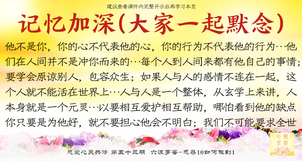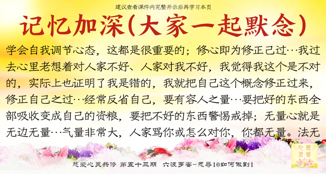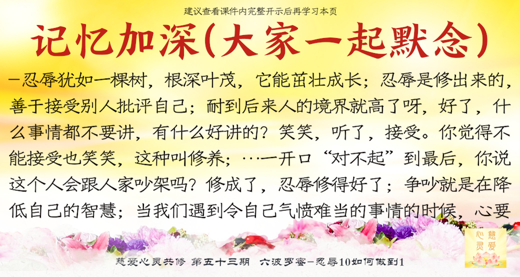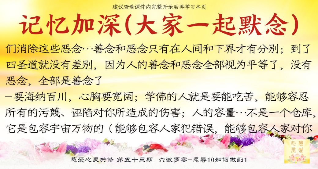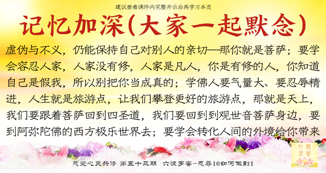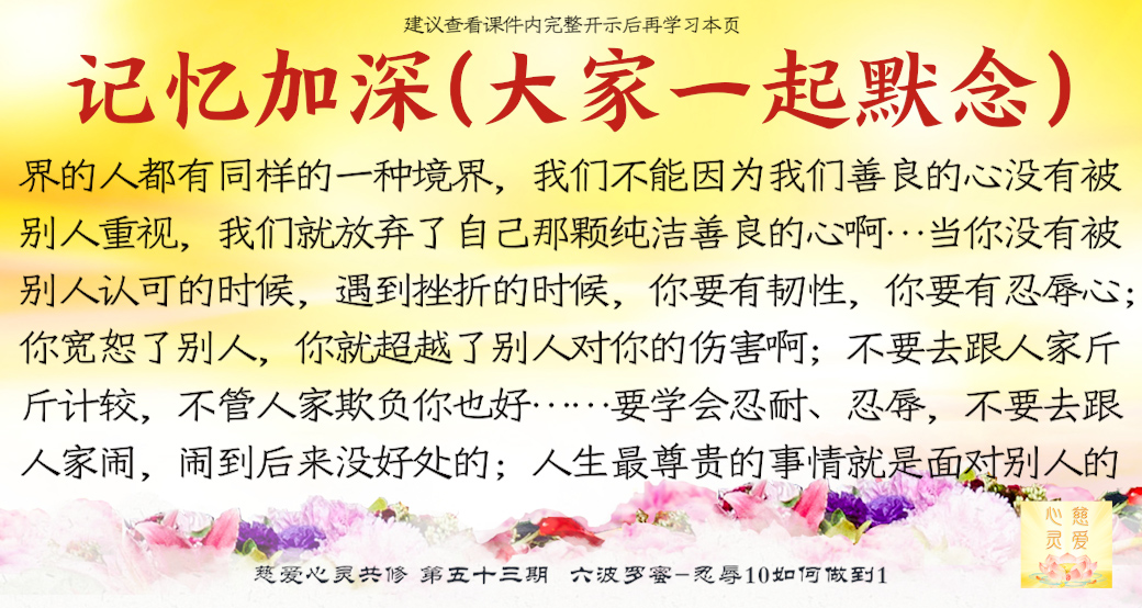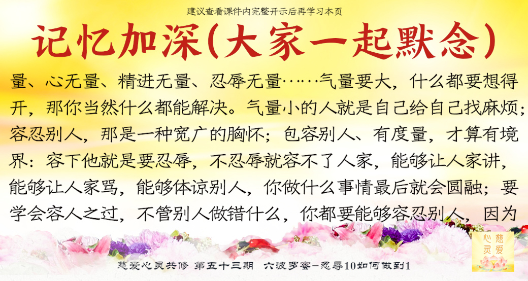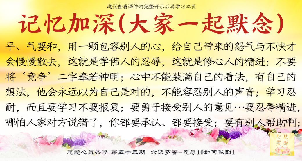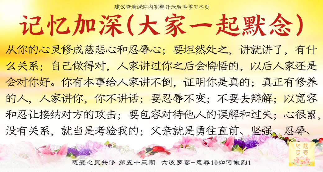 但是也要注意,不能带有强迫性的忍辱,强迫性的忍辱的话,你终有一天会爆发出来。要海纳百川的胸襟来忍辱,你就成功了。