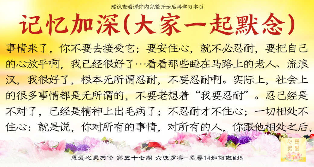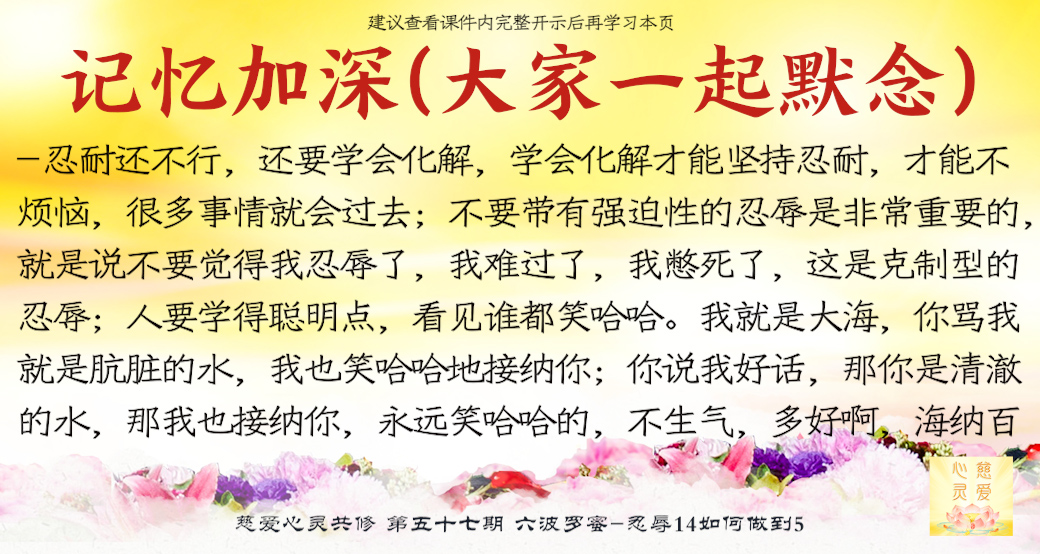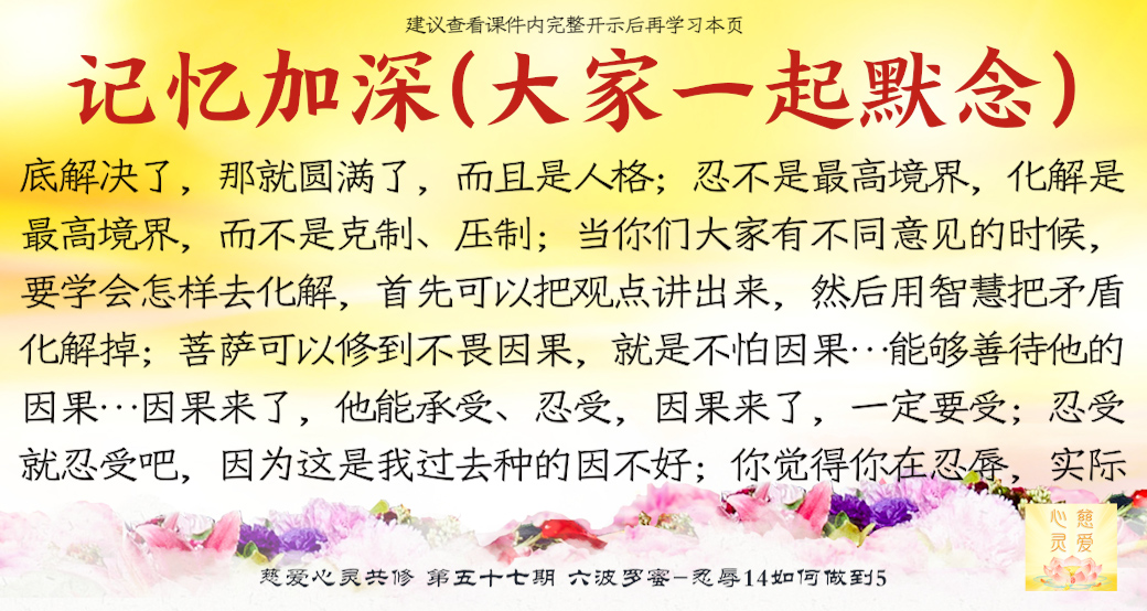 学会化解才能坚持忍耐,才能不烦恼,很多事情就会过去。如果你天天把很多事情放在心中过不去,你首先已经是在退转了,因为你没有忍耐,你没有化解。