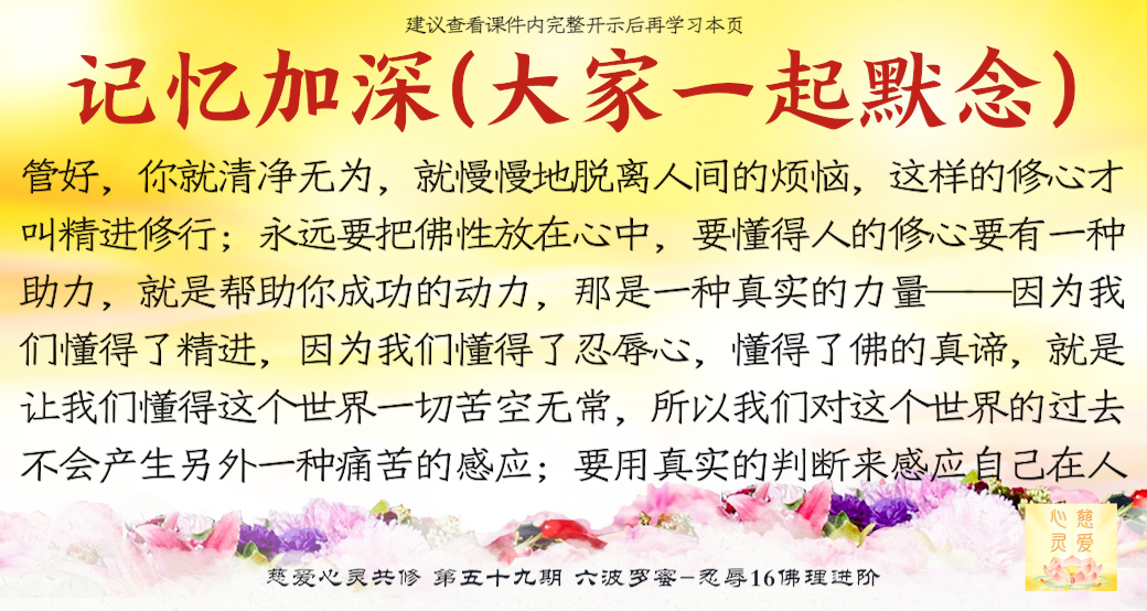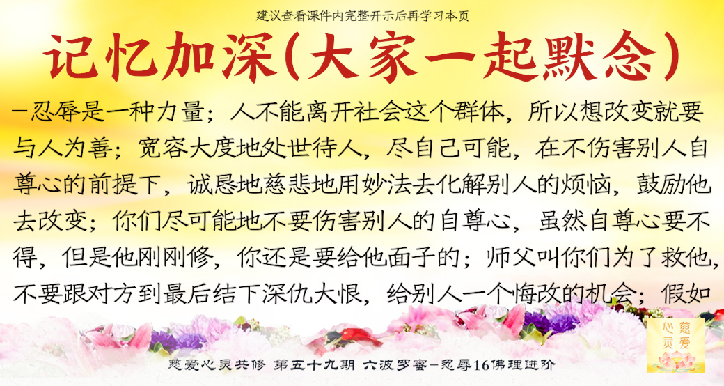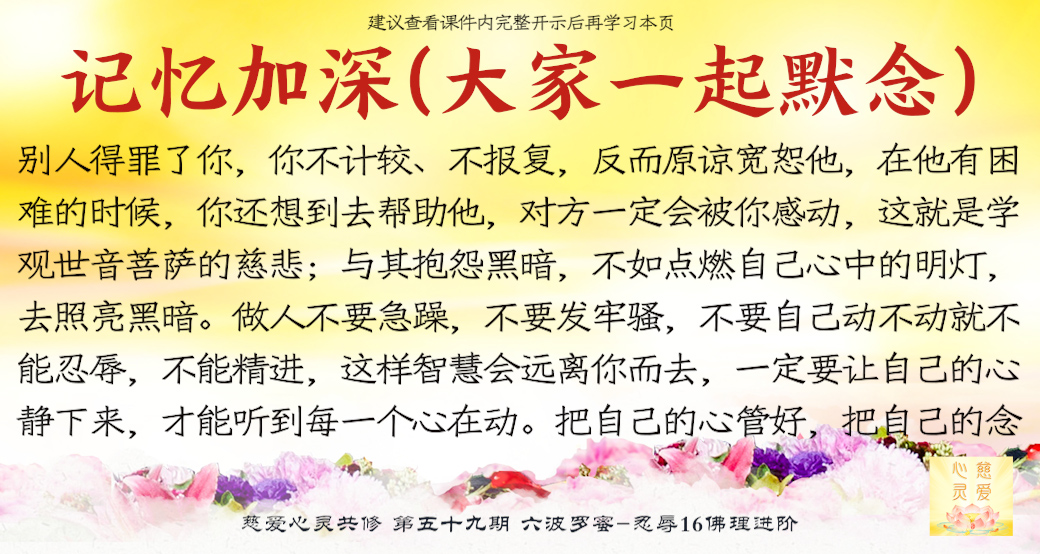 我们要关爱所有的人,每一个人在家里、在单位里、在社会上,都要学会容忍,因为忍辱的人才能精进,想让一个家保持平安,就要学会容忍。