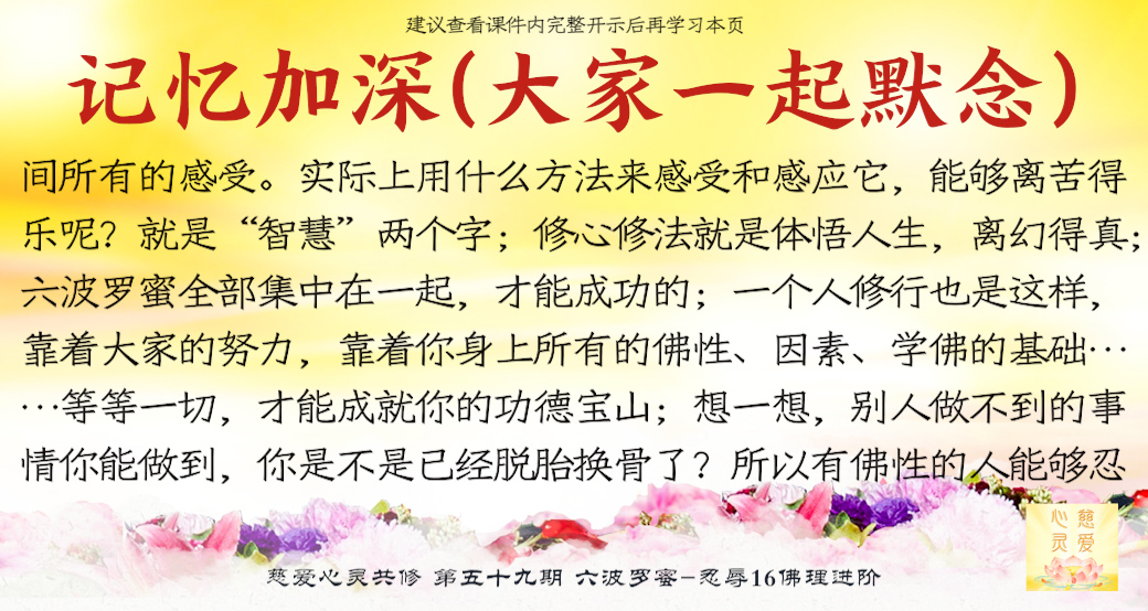 要记住,只有在泥泞的路上才能留下自己的足迹,只有经过艰苦的跋涉,终有一天会留下你前进的脚步。(掌声)我们学佛人用六波罗蜜智慧人生,不管在哪里,精进的足印都会深深地留在泥地里,印证我们的存在。我们不要只羡慕别人的成功,没有忍辱的修养,没有布施、精进、禅定,没有一个人会修成的。一分耕耘,总有一分收获,泥泞的道路上布满着我们智慧的脚印。
