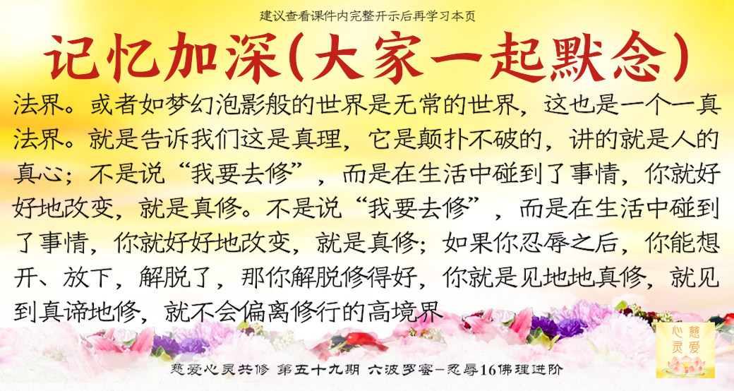 师父希望大家永远要把佛性放在心中,要懂得人的修心要有一种助力,就是帮助你成功的动力,那是一种真实的力量。什么动力?因为我们懂得了精进,因为我们懂得了忍辱心,懂得了佛的真谛,就是让我们懂得这个世界一切苦空无常,所以我们对这个世界的过去不会产生另外一种痛苦的感应。每个人的过去都是很痛苦的,要能够接受它,理解它,消除它,解脱它。要用真实的判断来感应自己在人间所有的感受。实际上用什么方法来感受和感应它,能够离苦得乐呢?就是“智慧”两个字。一个能够有智慧的人,他能用平常心看世界,他懂得一切都是无常的,这个世界一切拥有也会失去。所以平常心看世界,心能安止,心才能安定,才能制止自己那种无谓的思索,让自己沉浸在过去那种幻觉幻想当中,被它迷惑,来让自己内心产生更多的痛苦。所以师父要你们懂得,修心修法就是体悟人生,离幻得真。我们的心要懂得理解别人的心,懂得自身的心,感应别人的心,懂得开悟自心,不要被人间的一些景象所迷惑。你看看我们现在的人,命都不要,拼命地追求名利,本末倒置般地生活,把假的人生看成了真的,让我们迷失,让我们流落在痛苦的世界。
